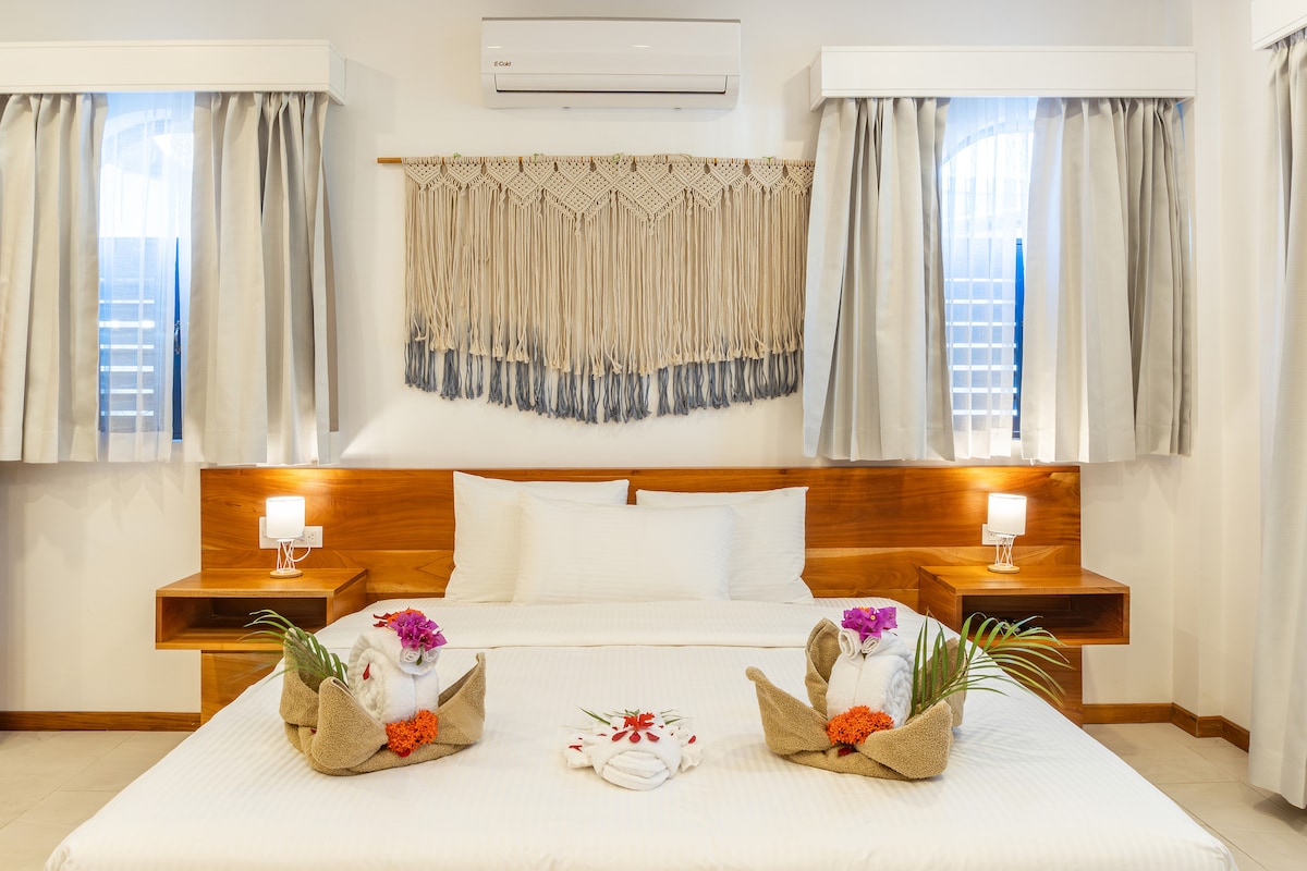 *Breakfast included! This spacious hotel room at the Good Life Lodge has a king bed, is located a quick 2 minute walk to the beach and a 1 minute walk into town. It's perfect for anyone wanting to be in the center of it all (note there may be late night music from neighbouring bars some nights in high season). You get access to the shared hotel facilities like cool jacuzzi, outdoor bar area, free morning coffee and help from our amazing staff. We have 6 modern hotel rooms and our 2-story Casa.