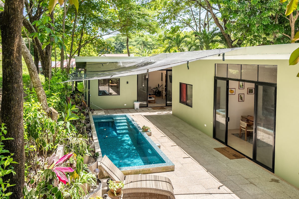 *** Private Pool / AC / Fast WiFi *** Welcome to our family's brand new dream vacation home! We designed this family-friendly home for guests to enjoy the best of Samara. Easy 5 minute bike ride to the town center & Samara beach. Casita Bejuco features a nice terrace overlooking its private salt-water pool that is surrounded by beautiful plants. Your private pool is all yours, it is not shared with others :)