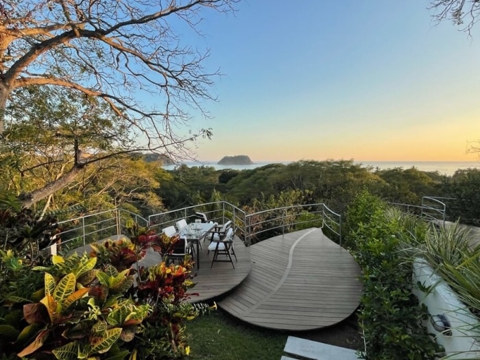 Casa Libre, Samara, is a modern Spanish colonial villa, completely furnished with high quality furniture and new appliances. It is situated on a private 10-acre property surrounded by dry jungle, where the hills meet the sea. The expansive veranda, rooftop observatory and infinity pool with adjoining rancho beckon guests outdoors to spectacular views, gardens, the flora and fauna. It is in the hills overlooking the sea, yet only 4 km to lively Playa Samara and 8 km to idyllic Puerto Carrillo.