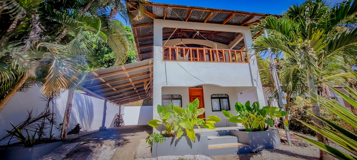 Sharing the tree-filled yard with monkeys, birds & iguanas, this light, airy, teakwood home is just 50 meters from the beach, close to the heart of Sámara. Great nature views & ocean sounds. This airy house has an open-plan kitchen - living room with many artistic, original details in local recycled woods; terrace, outdoor dining, hammock & garden. You can walk anywhere in minutes & go barefoot to the beach! NOTE: We do NOT have AC and some windows have SCREENS (no glass) for more air flow!