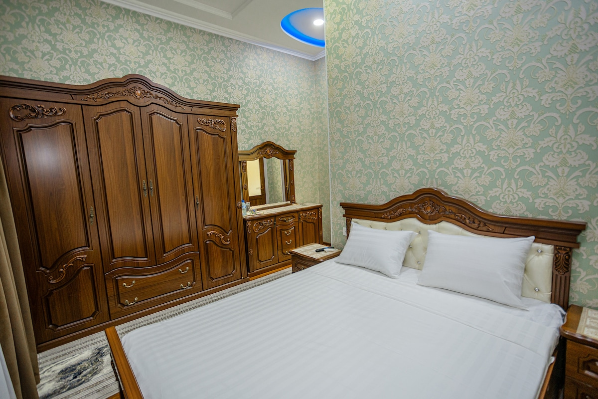 Clean, comfortable room with all amenities. Very hospitable family. It is possible to cook both yourself and use the services of the owner. Nearby there are many sightseeing places and food. It is about 3 km to Registan square.