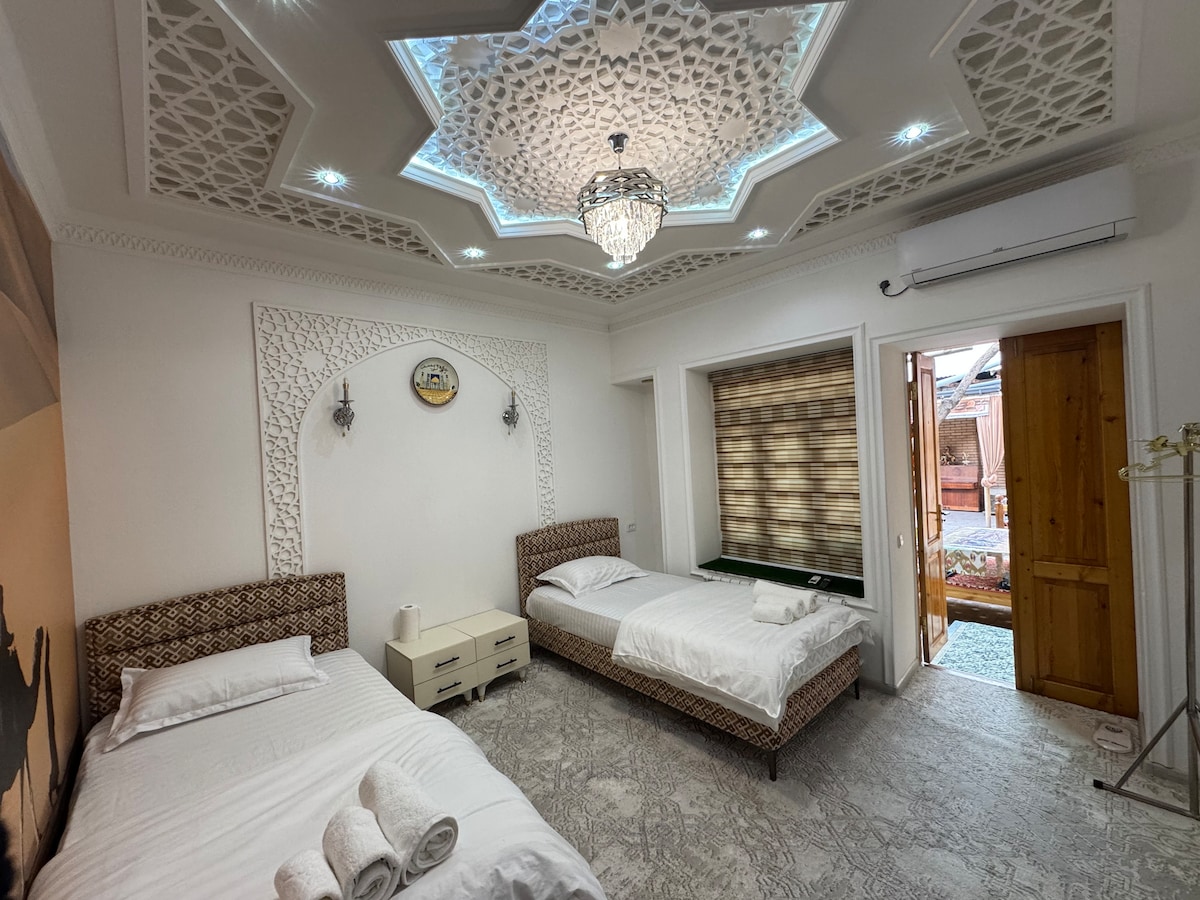 Newly renovated traditional Uzbek house with two spacious bedrooms in the heart of Old Town Samarkand, which comfortably fits up to 8 guests, making it perfect for families or a group of friends. Just a stone throw away from iconic landmarks in Samarkand such as Registan, Bibi-Khanum Mosque, and the ancient Silk Road bazaar called Siab Bazaar. Enjoy authentic charm with modern comfort in a prime location.