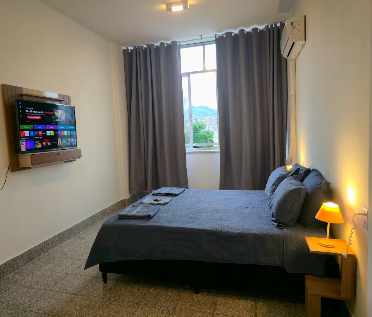 Flat charmoso e confortável muito bem localizado na Tijuca, pertinho da estação metrô Afonso Pena, linha direta para o Centro, Zona Sul, Barra da Tijuca e para as melhores praias do Rio, Copacabana e Ipanema. Próximo à UERJ, Maracanã, Prefeitura do RJ, Marquês de Sapucaí. Comodidades: Wi-fi 500Mb, enxoval completo, cafeteira, utensílios de cozinha. Prédio seguro, familiar e silencioso com portaria 24h, circuito CFTV e elevador. Condução na porta para várias regiões do Rio.