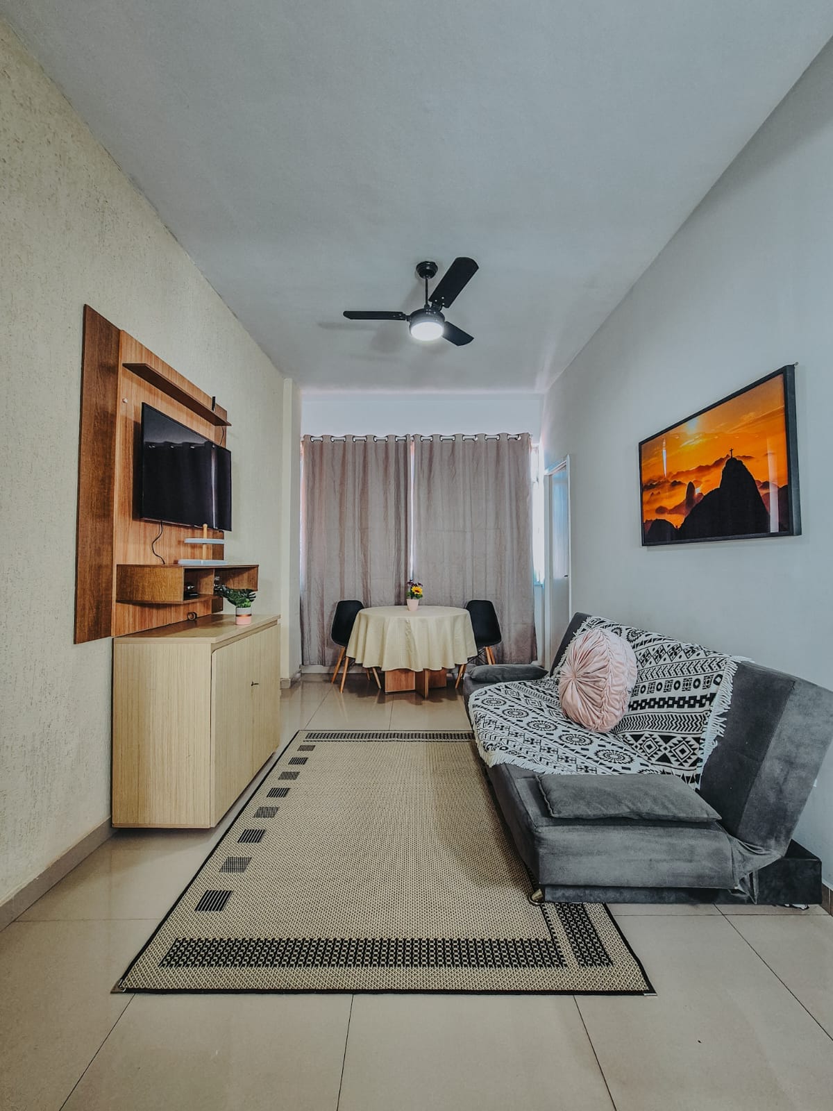 Espaço inteiro. O apartamento é amplo, aconchegante, organizado, bem arejado e iluminado, com sol da manhã. No quarto, há uma cama queen (euro colchão super premium) e um closet espaçoso. A sala é grande, com mesa de jantar, sofá-cama (casal) e uma varanda com plantas e rede. A cozinha é completa, equipada com todos os utensílios necessários. O banheiro foi reformado e possui chuveiro 220v. O ambiente conta com ar-condicionado, ventilador de teto e ventilador portátil de chão.