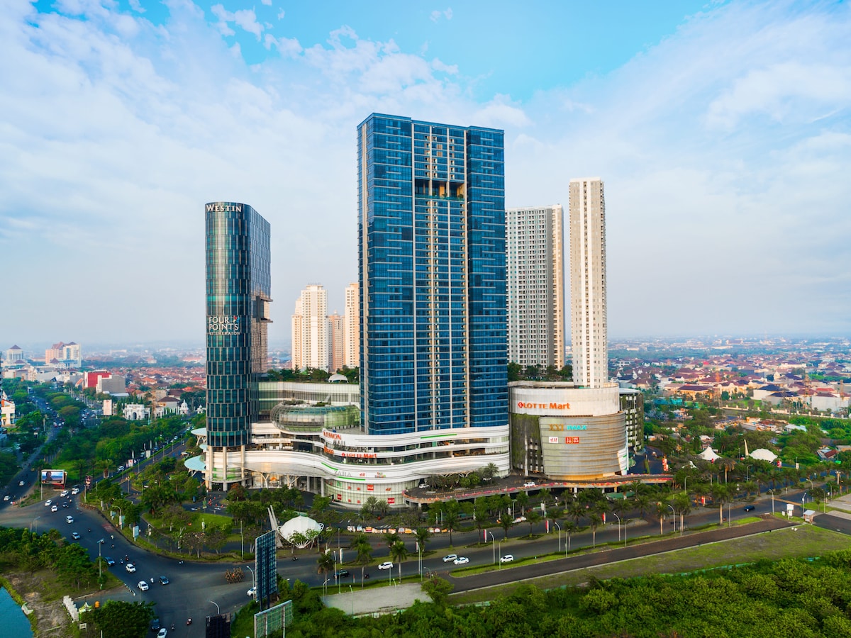 A modern, well-designed, and relaxing apartment for your stay. With 2 bedrooms, 2 bathrooms, and a well-equipped kitchen and plenty of amenities, it is your home away from home. Apartment size: 64 sq. m Located on top of the Ciputra World shopping mall complex, the apartment has direct access to food, shopping, entertainment. It is also only a 5 minutes drive to the highway, making it a great choice if you want to explore not just Surabaya, but also the many interesting places beyond the city.