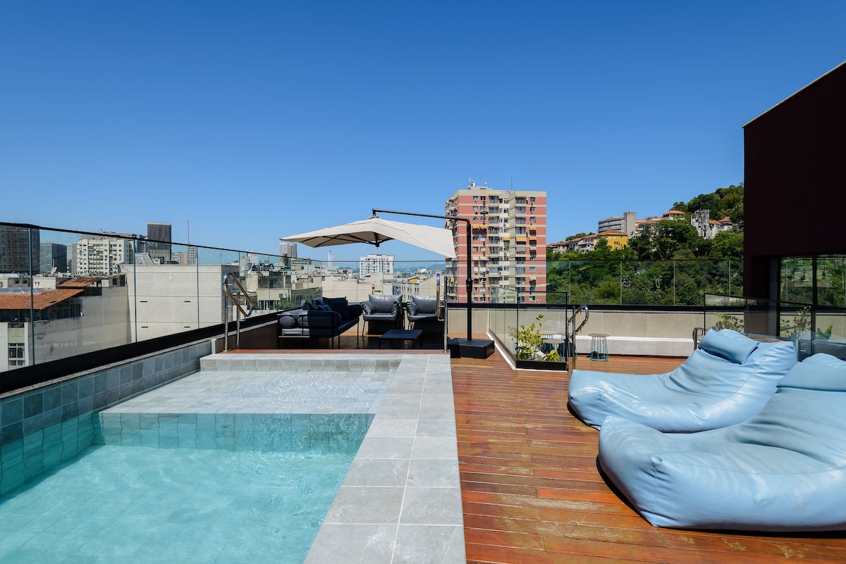 带泳池的公寓——距离阿科斯·达·拉帕(Arcos da Lapa)和弗拉门戈海滩(Praia Flamengo)5分钟车程