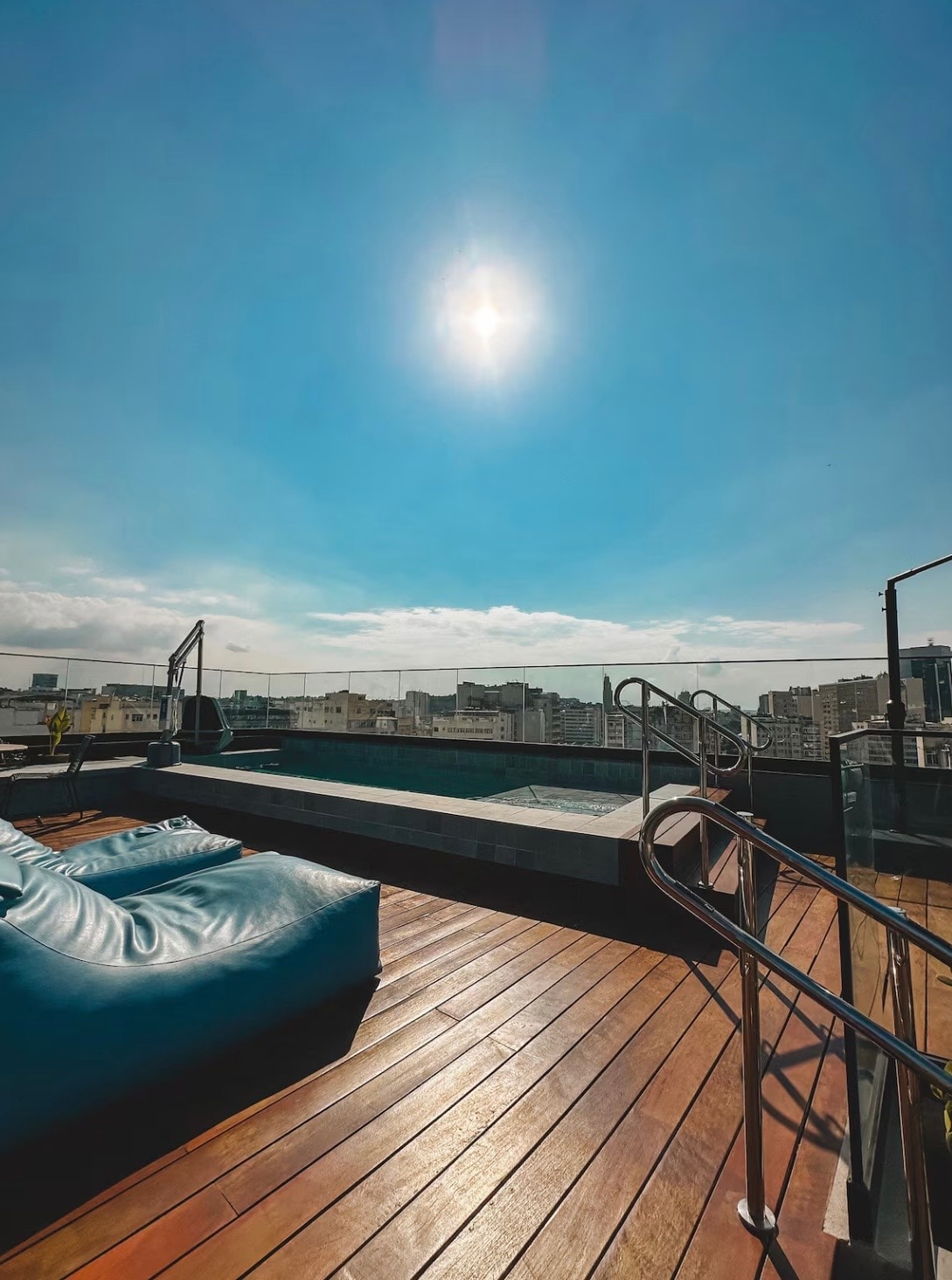 Well-maintained studio in a modern building with pool, BBQ area and gym. Features a queen-size bed, Wi-Fi and a balcony with evening sun and a beautiful view of the Arcos da Lapa. Walking distance to: – 5 min: Cinelândia Metro, Catedral Metropolitana, Selarón Steps, Santa Teresa Tram & Municipal Theater – 15 min: Confeitaria Colombo, Praia do Flamengo & Aterro do Flamengo In the evening, enjoy the vibrant nightlife of Lapa with samba bars and clubs just around the corner.