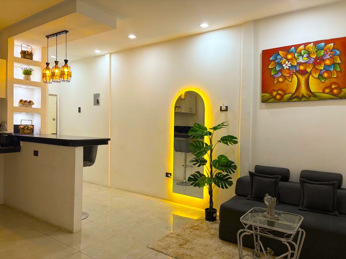 Ubicada en un condominio seguro, esta suite ofrece una experiencia única con una decoración moderna que incluye un columpio de rosas y chimenea decorativa. Con cocina totalmente equipada, área de trabajo, Wi-Fi, es perfecta para turistas, nómadas digitales, parejas y viajeros de negocios. Ubicada sobre una avenida principal, frente a un mall con tiendas y restaurantes, a solo minutos del aeropuerto, terminal de buses y centro turístico. Disfruta de recepción 24/7 y servicio de lavandería.