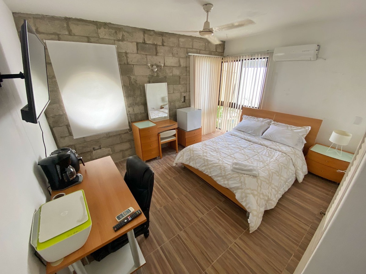 Ubicados en la via a Samborondon dentro de una urbanización privada. La Suite esta compuesta por una cama de 2.5 plazas (Queen Bed). El televisor es de 40 pulgadas (nexflix incluido). caja fuerte, baño privado con agua caliente y aire acondicionado. El edificio cuenta con parqueo privado y wifi en todas partes. Tiene acceso a una terraza con mesas y sillas Solo alquilamos a un solo pasajero (no aceptamos dos personas en la reserva). se prohiben visitas de cualquier tipo.