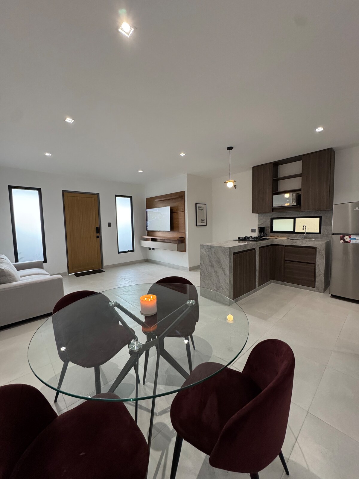 Enjoy a brand-new, stylish, and minimalist space. The apartment includes: -Fully equipped kitchen -Dining area -Modern bathroom -Private parking -Bedroom with a Queen-size bed -Air mattress for 2 additional guests Perfect for travelers looking for comfort and privacy with a strategic location: -6 minutes to the bus terminal -8 minutes to the international airport -15 minutes to Malecón 2000 -15 minutes to Samborondón
