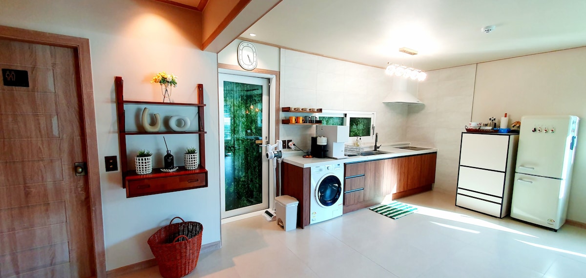 There is pine tree trail park near my house so we can refresh with the cool air. In the winter season, there are wonderful ski-slopes where the 2018 winter Olympics will be held taking 30 min. to drive. convenient location 5min. walk to pine tree trail park and the beach 15 min walk to the port to get a ferry to Ulleungdo & Dockdo(Far-east territory in Korea) 10-15min. to drive to the train station and the bus terminal 30 min. to the ski resort