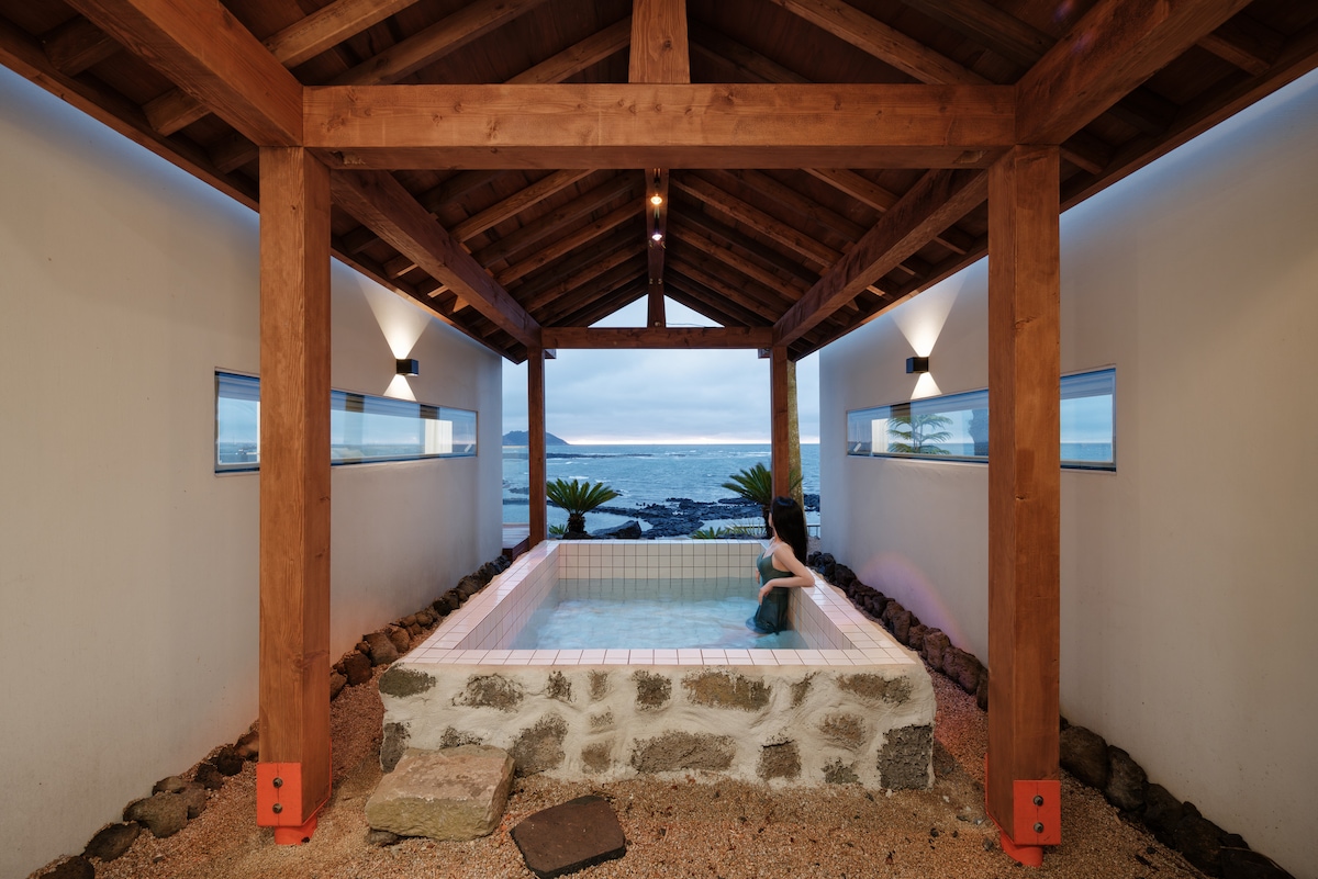 ▶제주 숨 오픈기념 할인행사 ◀ 1. 최대 55%~20% 가격 할인중입니다. 2. 2박 이상 전기차 충전 무료제공.!!! 바다 앞 설래임을 품고 숨은 듯 자리 하고 있는 평화로운 스테이 "제주 숨" 차분하면서도 스타일이 살아 있는 숙소에서 편안하게 힐링해 보세요. "디자인 노을"의 4번째 작품입니다. 실내 어느 곳에 서있어도 아무런 방해 없이 바다와 연결됩니다. 바다 앞에서 즐기는 자쿠지 35도의 온도는 그간의 피로는 말끔하게 녹여줍니다. 눈 내리는 어느 날, 노천탕에서 맛볼 수 있는 포근함을 느껴보세요. 그리고 봄, 여름, 가을 시원한 족욕 시설(차가운 연못)에 발을 담그고 맞을 수 있는 저녁 식사, 또는 힐링의 커피 타임 추억을 담아갈 수 있어요. 두 커플, 또는 4인 가족의 휴식에 최적화 되어 있답니다. "제주숨"안에 있다면 실내에서만 즐기기에도 시간이 모자랄 거에요. 2박 이상 연박을 적극적으로 추천합니다.