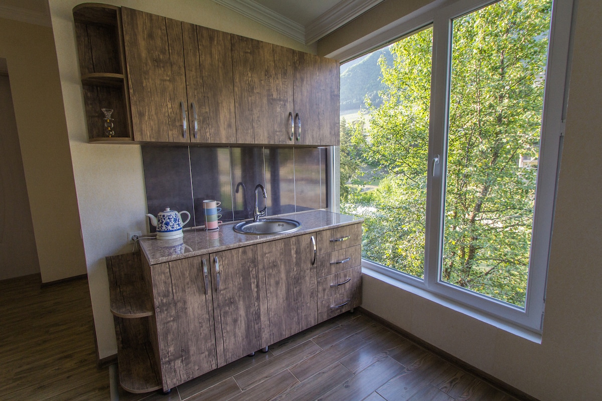 View, view, and view! Enjoy one of the most breathtaking views in all of Hatsvali, Mestia. The place is private and peaceful, yet only 50 meters from the Hatsvali ski lift. Wake up to the sounds of squirrels, maybe spot a fox, and admire the majestic twin peaks of Ushba. The area is regularly treated for insects, but as it’s surrounded by pristine forest, you may occasionally notice a fly or small bug — part of the true mountain experience.