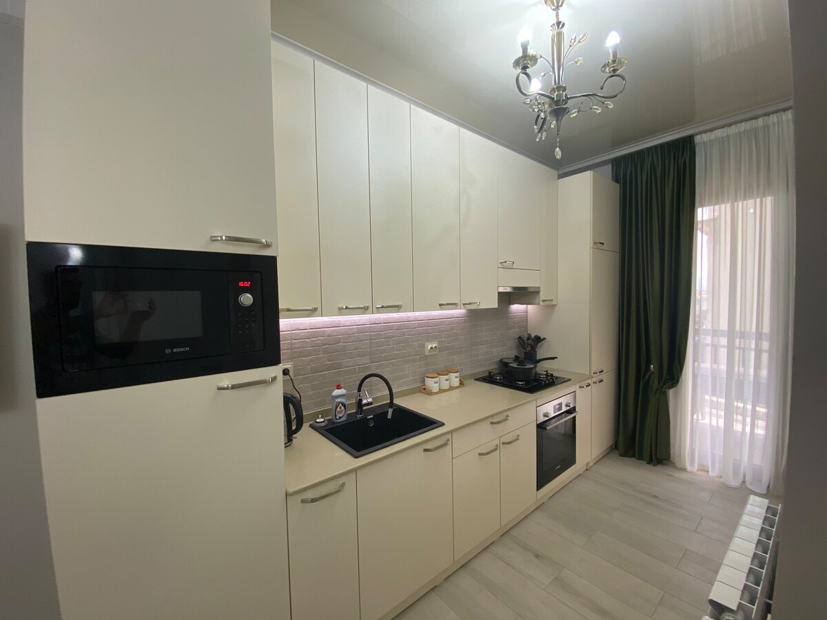 Enjoy a stylish vacation in the heart of the city. The apartment is quiet and cozy, but you leave the house and in a minute you are immersed in the world of wonderful aromas of Georgian cuisine, beautiful buildings and unsurpassed nature. Walk through the friendly streets of Kutaisi and you will want to stay here forever