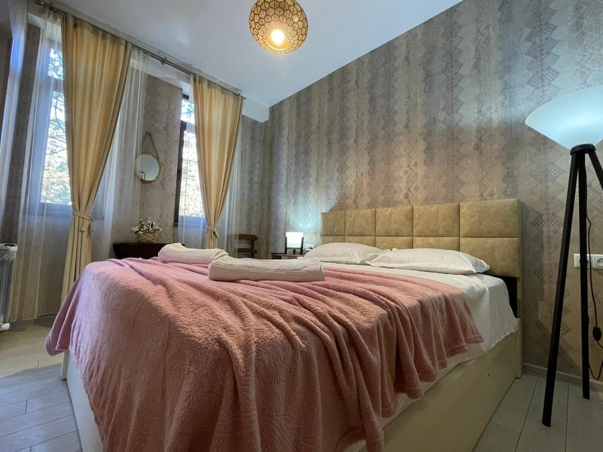 Escape to your private entertainment haven in Kutaisi! Whether it's raining or scorching hot outside, our apartment is the perfect retreat to relax, unwind, and have fun, located just a ten-minute walk from the city center. Step into a stylish and comfortable apartment designed for both relaxation and entertainment. The space is your personal cinema and game room, all in one.