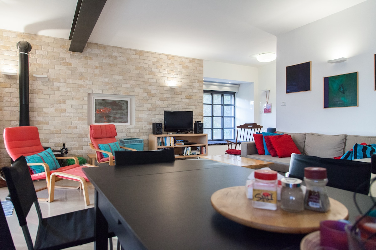 [TAX-FREE (17%) FOR TOURISTS – DETAILS IN HOUSE RULES] NY Loft Style Meets Mediterranean Views 🌊 Discover Manhattan vibes in the heart of Haifa. This fully renovated, designer apartment on Hillel St offers a unique urban escape with a stunning panoramic balcony. ✨ NY-Inspired Design: High-end, modern interiors ✨ Panoramic Balcony: Stunning sea & city views ✨ Top Location: Steps from Masada St., 10 min to Bahai Gardens ✨ Fiber WiFi: Ultra-fast 574 Mbps ✨ Access: 47 stairs