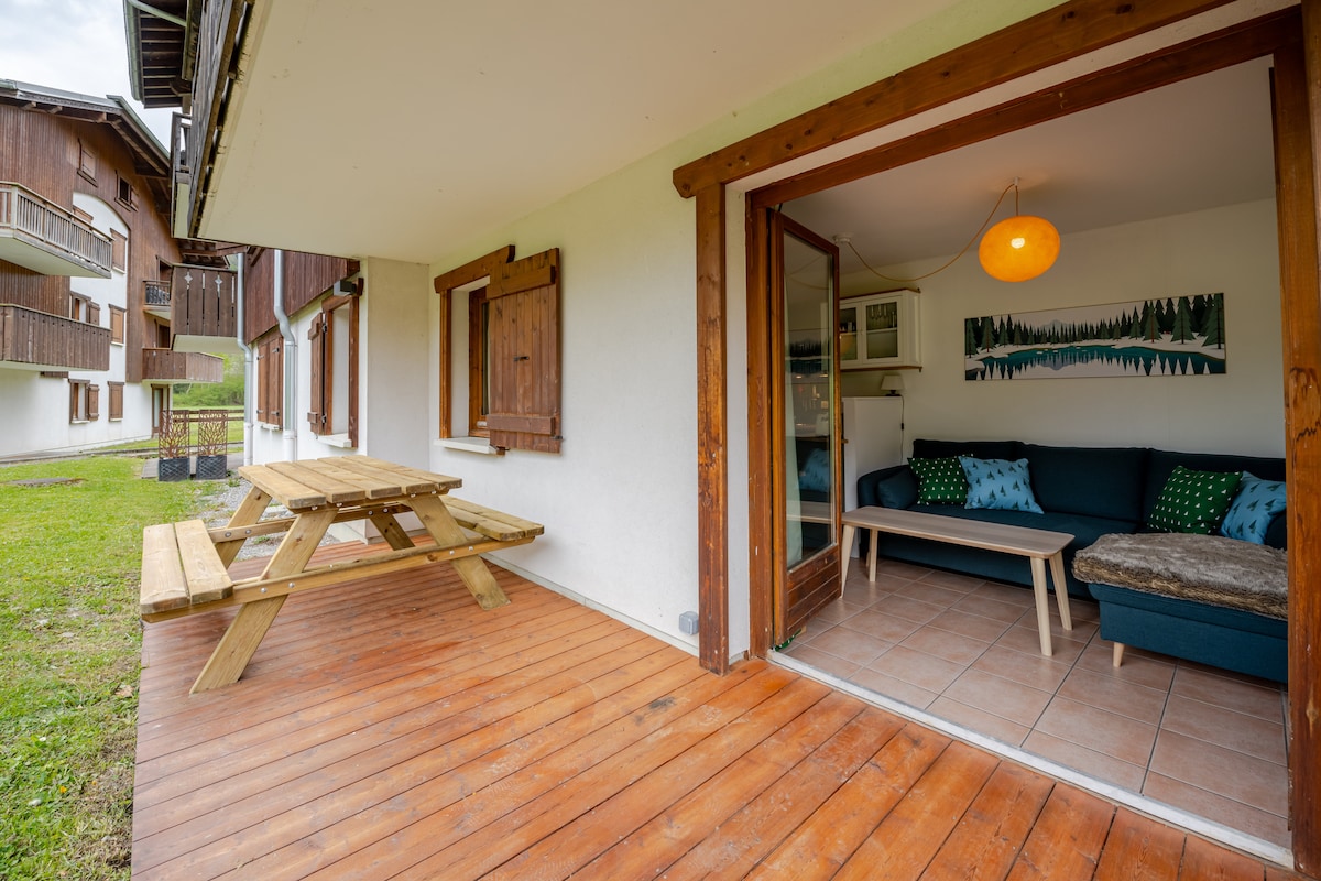 Faites une pause et détendez-vous dans cette oasis paisible au coeur des montagnes. Ce magnifique studio refait à neuf se situe dans le triangle d'or, à moins de 30 minutes de Genève, 45 minutes d'Annecy et Chamonix. Vous aurez accès aux différents espaces extérieurs ainsi qu’aux stations de ski à proximité : Les Brasses, Les Gets, Morzine, Châtel, Avoriaz, Samoëns. À partir du 15 mai, la piscine extérieure est accessible jusqu’au 15 septembre. Logement idéal pour un séjour à 2.