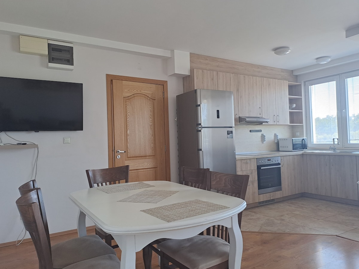 Welcome to your dream getaway! This stunning luxurious home nestled at the foot of Vitosha mountain offers an unparalleled escape for those seeking sophistication and comfort. It’s located near Ring Mall , IKEA and Ring Road. The spacious living room features a generous, plush sofa, amazing kitchen, equipped with modern appliances, and a beautiful TV wall with an electric fireplace. There is a stylish bathroom, a comfortable double bed in the bedroom and a cozy terrace. Free parking place!!!
