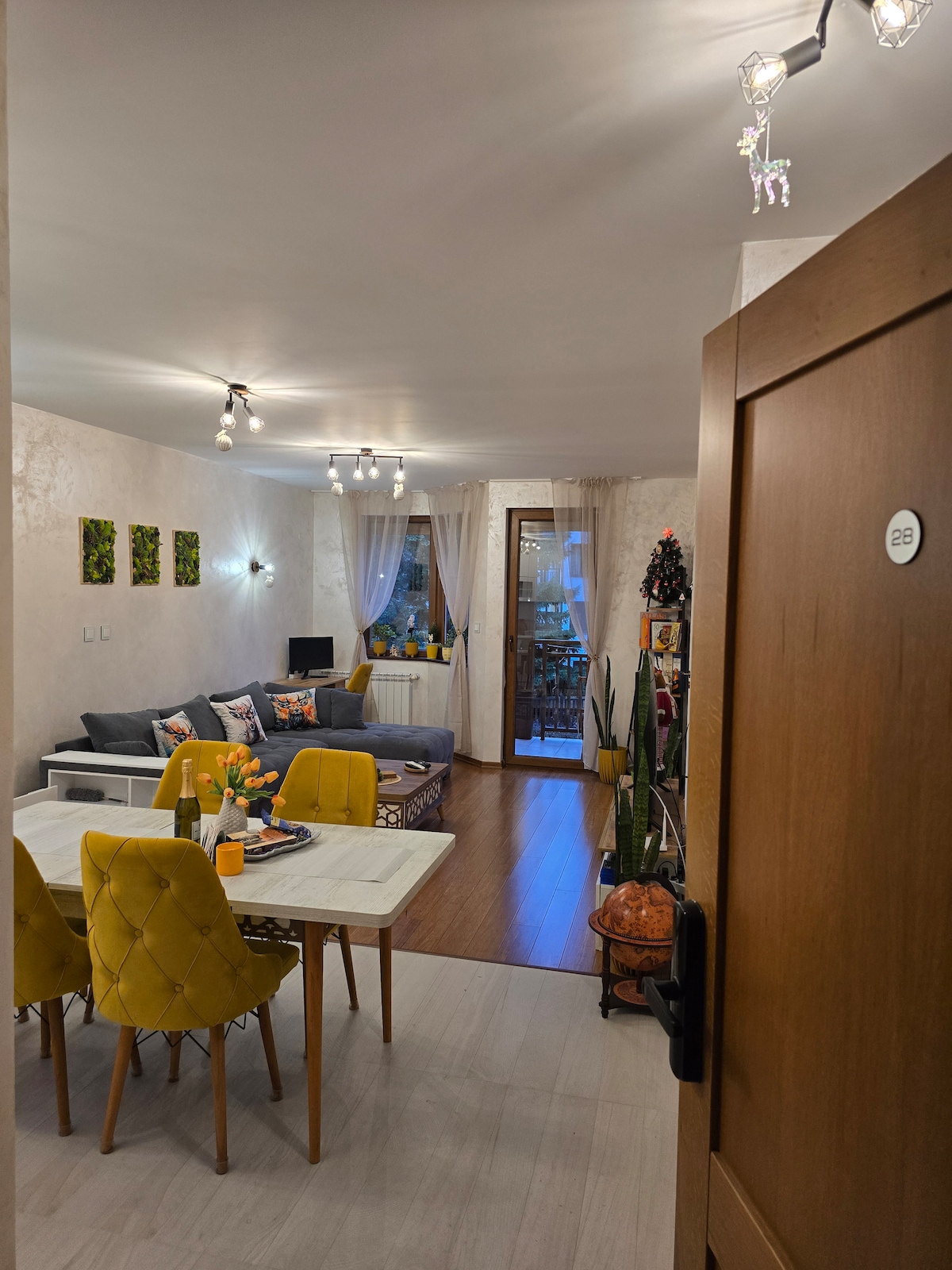 Welcome to your mountain retreat! Large one-bedroom apartment in a picturesque ski resort surrounded by pine forest. Inside, an elegant living space with a comfortable couch, 55-inch TV with PS4, Netflix, Max, super fast WiFi & workstation. After skiing or hiking, take advantage of washer-dryer combo and have fresh clothes ready for tomorrow. Resort amenities include SPA, indoor pools, gym, and a restaurant with snowy views. Gondola & chairlifts are 4 min away by car. *SPA & Restaurant 17Dec