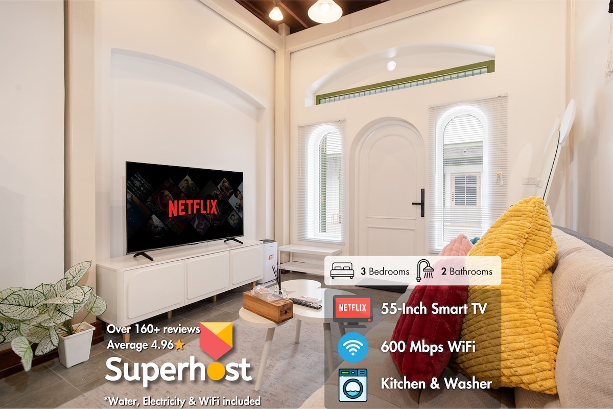 平均评分 5 分(满分 5 分),共 51 条评价宽敞的度假屋,私人楼层,靠近轻轨和Iconsiam