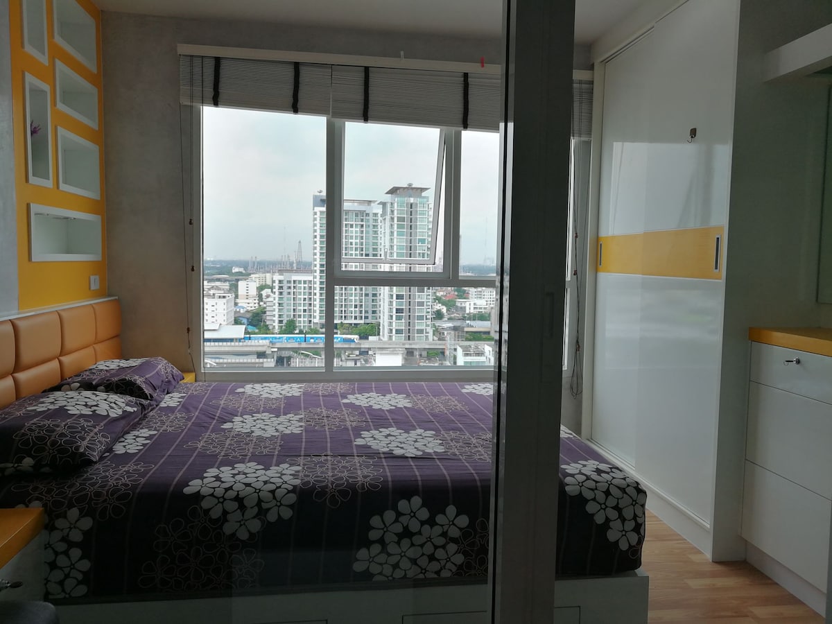 Experience a high-rise condominium like no other! Equipped with an amazing gym facility and ROOFTOP infinity pool! Sparkling clean apartment installed with high-speed WiFi and various Netflix movies for free! With 24 hrs convenience stores and food stalls that serve sumptuous meals till midnight, you will never go hungry. BTS train station is located just 50 meters away! 欢迎您来! 本公寓提供舒适的房间, 房间里设备齐全 厕所, 网络, 软床, 位于离Bts Udomsuk 轻轨站很近 , BTS Udom Suk 那里有菜市场, 街边有卖很多的食物, 就1分钟走路到那儿, 非常地方便.