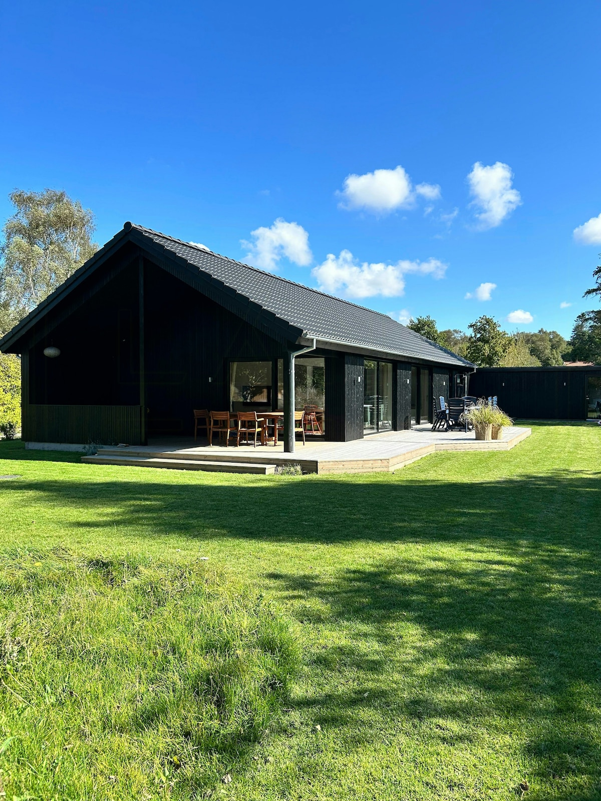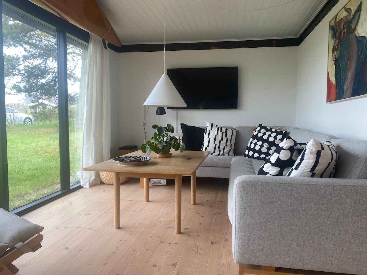 Storslået feriebolig på i alt 260 m2 beliggende på 2680 m2 grund i naturskønne omgivelser. Udlejes centralt i den historiske handelsby Tranebjerg. Vores unikke og rummelige hjem har sin helt egen retrostil som sammensmelter nymoderne design og patinerede rustikke møblementer. Vores hjem ligger centrail i Tranebjerg, og er indrammet i smuk natur. Nabolaget består af det gamle smukke Tinghus, Tranebjerg Kirke og fredede marker. Det er også muligt at leje det tilhørende gæstehus - hele ejendommen.