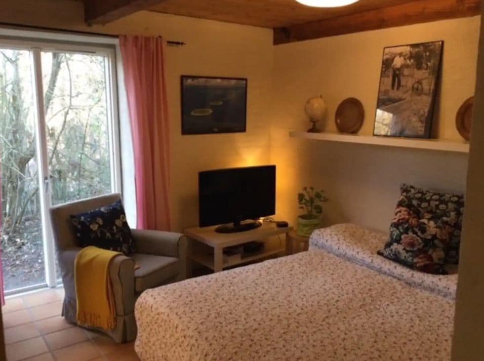 Moderne selvstændig lejlighed i sydenden af skøn rolig landejendom. 2 værelser med 2x90cm senge som dobbeltseng i haveværelset og 1 stk 140cm dobbeltseng plus god sovesofa i markværelset. Køkken med moderne faciliteter og 5 spisepladser samt lille sofa. Adgang til egen terrasse med grill og fælles have. Badeværelse med brus og pusleplads. Skøn udsigt over have og marker. Bålplads, bakke med udsigt, 850 m til skøn badestrand. Vi har høns, biavl og øko-fåreavl på gården. El-bil lader 11W.