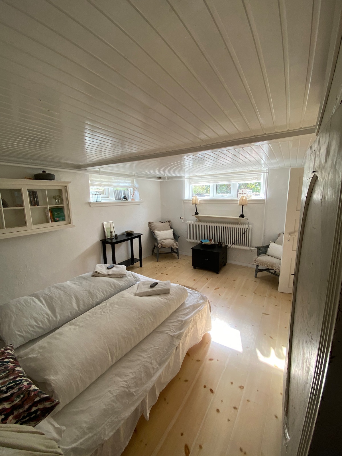 Slap af i denne unikke og rolige bolig. Huset er på en stille vej med ro og fred og en fin have med hængekøje og stort sort anneks med strandudstyr. Der er det gule soveværelse med dobbelt seng og loft rum / hems med dobbelt seng. Derudover et værelse i stueplan med dobbeltseng- det lyserøde Rum.Der er køkken med alt udstyr ( obs mini ovn) Badeværelse med toilet og brus. Opholdsstue med loft til kip og en stor sofa. Udgang til have med spiseplads. Plads til en hund dog ikke i møbler og senge.