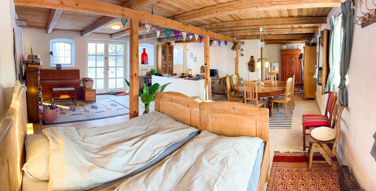 Unikt sommerhus! Totalrenoveret ladebygning, med synlige bjælker, højt til loftet og udsigt over marker. Rummeligt, smukt og hyggeligt. 15 min gåtur til strand og fjord. Besser er en hyggelig, lille by med en smørrebrødscafe og god stemning. Vi er tre søstre, der siden 2013 har bygget og renoveret ladebygningen. Vi holder meget af stedet og er her tit med venner og familie. Huset er fra 1777.