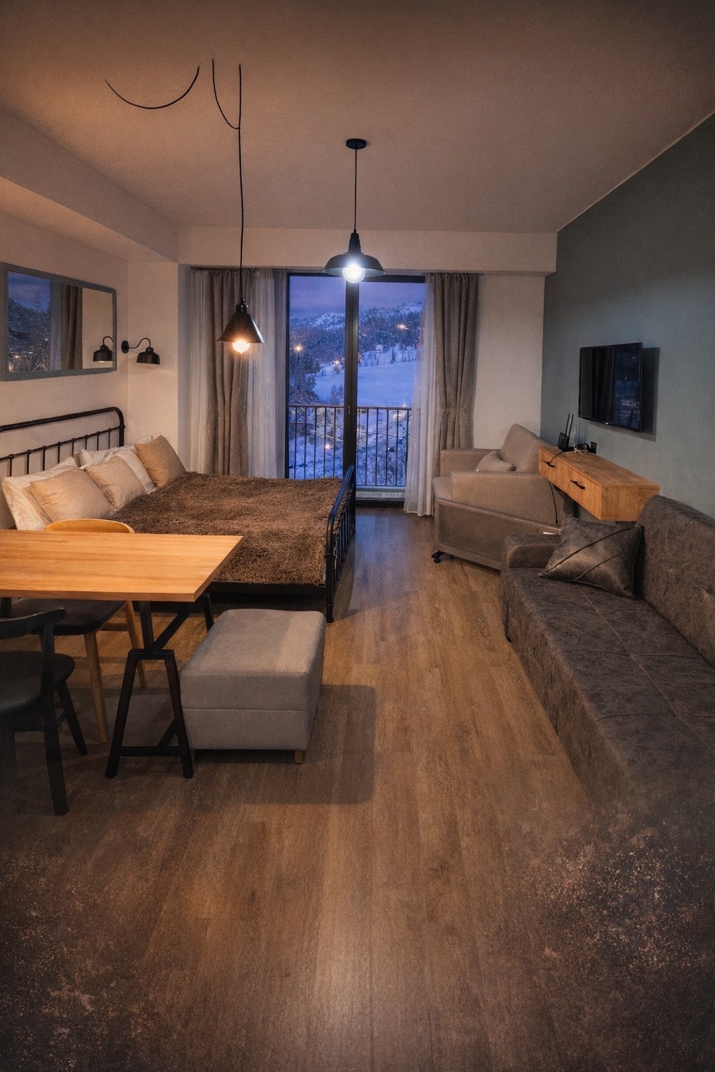 BN Investment offers hotel-type apartments in Bakuriani Inn 5-star complex. Where you will find a diverse environment for people of all tastes and ages. The hotel includes a restaurant, fitness center, bar, garden, spa, wellness center and many common areas. Our customers will enjoy a 20% discount on the additional paid services mentioned above. We have a 24-hour reception, free Wi-Fi. Additional services : transportation from the airport, room sorting service, tours in Borjomi and Bakuriani.