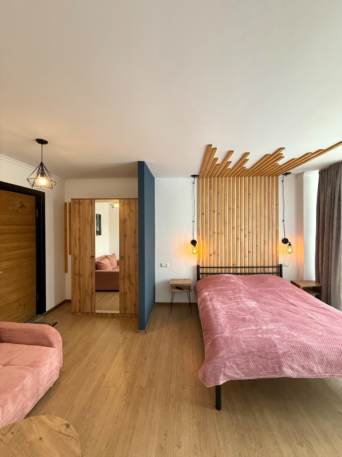 Have fun with the whole family or friends at this stylish place in beautiful Georgian mountains. 30sq meter apartment with balcony offers comfortable stay with kitchenet, bathroom and necessary amenities. You can easily ski in and out, Didveli sky lift is only 500 meters away.