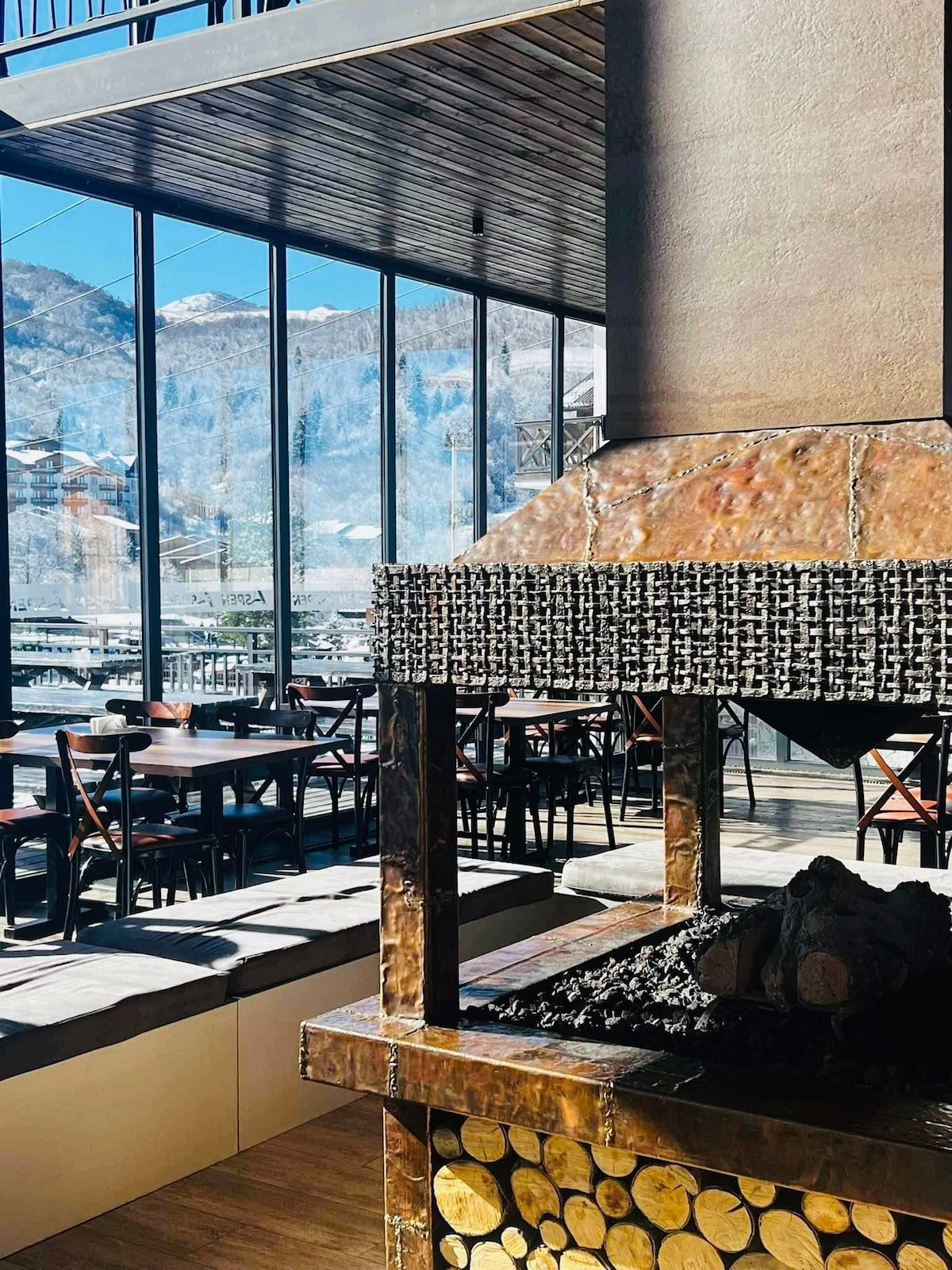 There is a beautiful view from the balcony.The apartment offers you indoor spacious hall which is warm and beautifully decorated with Christmas decorations during winter. There is a small caffe with plenty of sofas and children zone . While in summer you can enjoy having time in an outdoor patio. Free indoor parking is available .The nearest ski slope “Kokhta” is 600m away where you can walk or taking public transport directly from the apartment. Grocery stores and restaurants are within 300 m.