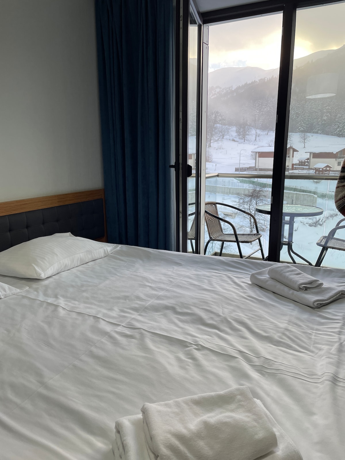 гостиничный номер в Бакуриани "Crystal New Resort"❄️💎 На територии “Cristal Resort “ вы найдете все необходимые услуги (бассейн, спа, тренажерный зал, канатная дорога, прогулочные дорожки, магазин «Никора», ресторан, кафе и ледовыи каток✨ Полный комфорт для отдыха