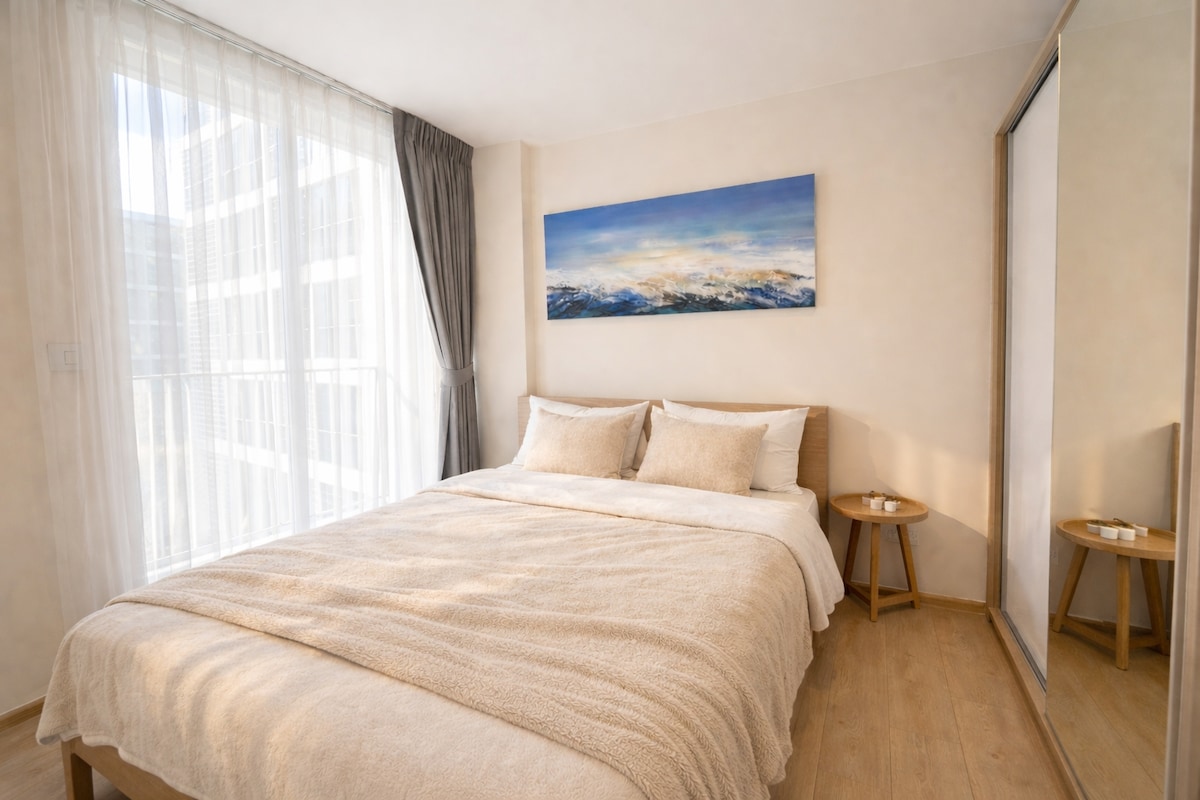 Welcome to our modern and cozy retreat in Vivere Condominium! This stylish low-rise condo, with only 69 units, offers a peaceful and private stay. Our thoughtfully designed space features a comfortable living area, a dedicated workspace with high-speed WiFi, and a well-equipped kitchen. We’ve also created a special coffee corner with a Nespresso coffee maker and milk frother, perfect for starting your day with a fresh brew.