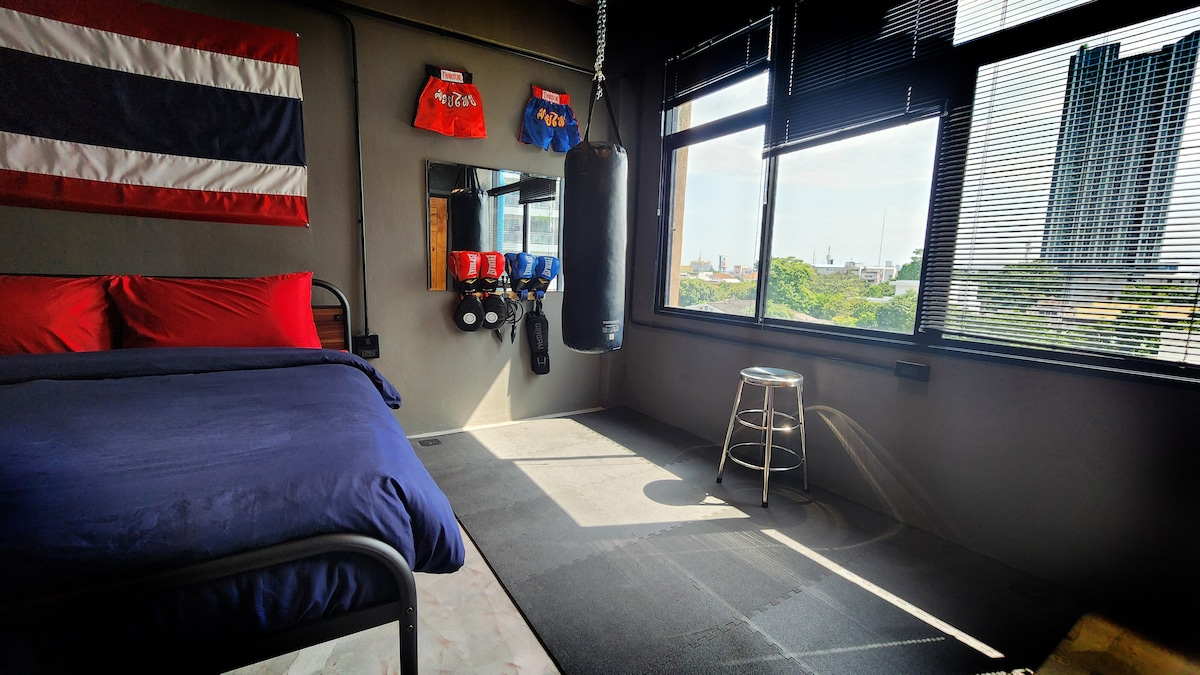 Thailand! Cannabis is now legal, and the best place to enjoy is this large, luxury room on the 4th floor of a 420-friendly boutique guesthouse in downtown Bangkok's coolest neighborhood. Enjoy weed, craft beer and video games in Arcadia, a neon, ‘80s sci-fi barcade and dispensary. Smoke on your own private balcony or our rooftop lounge which hosts cult movie nights, retro gaming, standup comedy, boardgames and DJs. Sleep comfortably in a large, gorgeous room that takes up the entire floor.