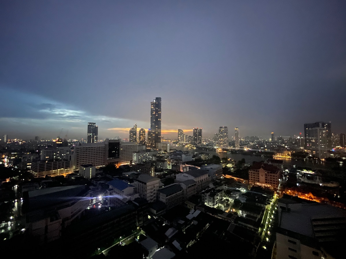 ห้องของเราสามารถชมวิวได้ทั้งในเวลากลางวันและกลางคืน และเป็นห้องมุมจะทำให้คุณมีความเป็นส่วนตัวในเวลาที่คุณมาพักผ่อนกับเพื่อนหรือครอบครัว คอนโดของเราสะอาดและปลอดภัย ตั้งอยู่ที่ใจกลางเมืองกรุงเทพฯ - ใกล้สถานีรถไฟฟ้าสะพานตากสิน - ห้องพักของเรา ตั้งอยู่บนชั้น 11 - ใกล้แม่น้ำเจ้าพระยาท่าเรือสาทร - สามารถเดินทางไปเอเชียทีค ได้ง่ายๆ เพื่อให้คุณได้ใช้เวลาร่วมกับเพื่อนหรือครอบครัวได้อย่างมีความสุข