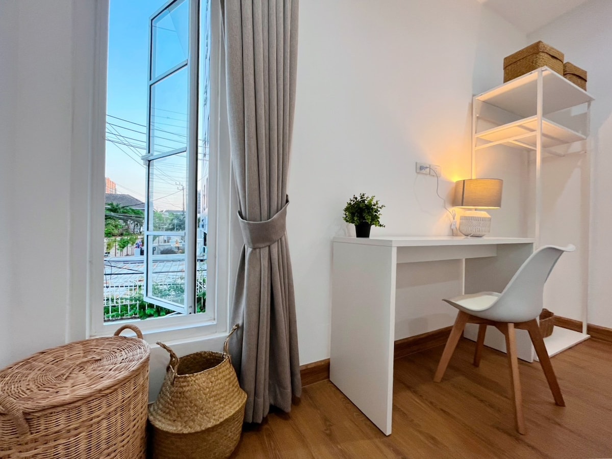 Welcome to our charming Bangkok townhouse! Nestled in a safe, quiet neighborhood, our two-bedroom, two-bathroom home blends modern comfort with convenience. Enjoy plush memory foam beds, three working desks, and high-speed fiber internet, perfect for leisure or business. Amenities include a washing machine and outdoor dining area. Just a short walk from BTS Punnawithi Skytrain, explore easily. Enjoy local street food and nearby True Digital Park shopping. We ensure a warm, stress-free stay.