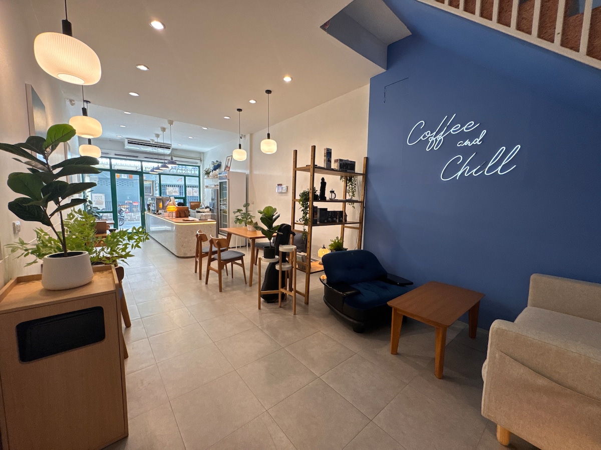 Cozy room on 3rd floor with 2 beds, Smart TV + Netflix, and digital door lock. Shared bathroom (each floor has 2 guest rooms and a bathroom). Just 3 mins walk to BTS Udomsuk. Enjoy a coffee shop downstairs and lively local street food nearby. Perfect for solo travelers, couples, or digital nomads. * Free one complimentary drink from the cafe per guest