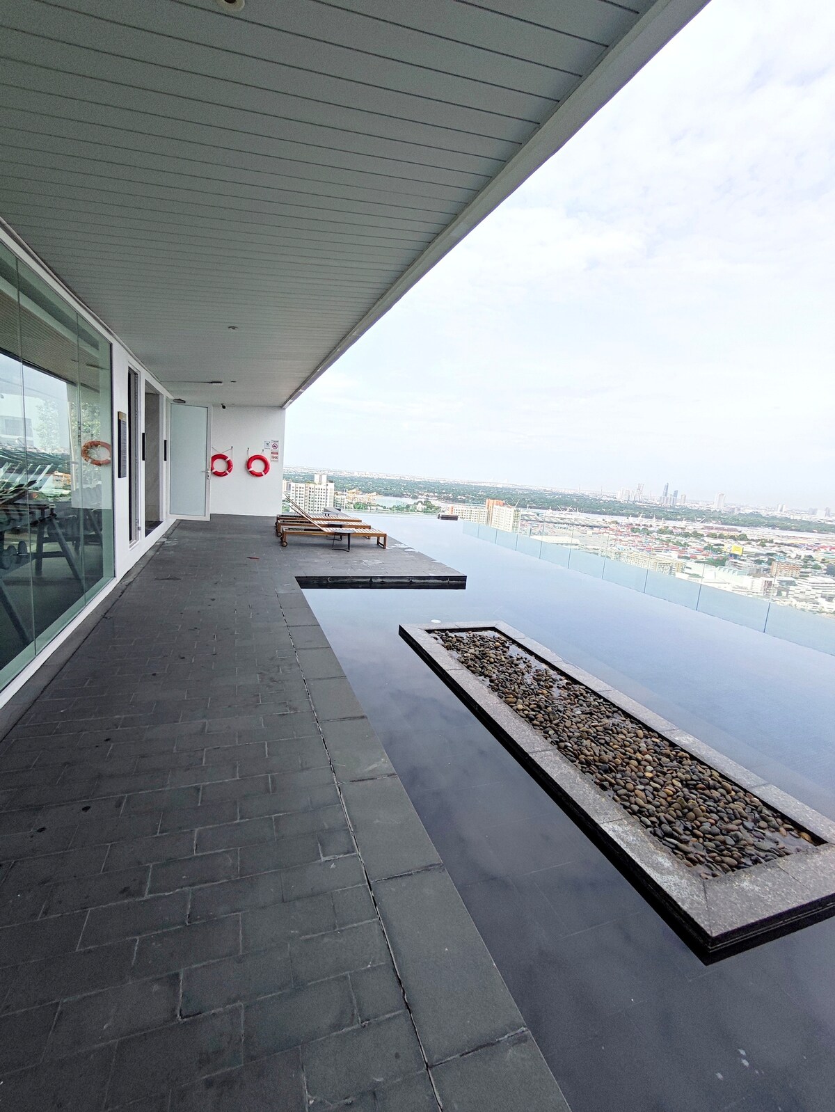 Relax and gaze out at the ever-changing view of the Chao Praya River from the huge windows of both living room and bedroom. Take in a sunset and a stroll to the Asiatique night market just steps away. Situated in one of Bangkok's tallest buildings, this sleek high floor room with picture-window views offers a taste of local city life. Shared top standard amenities include a 360° infinity pool, gym, basketball court, sky lounge and more.