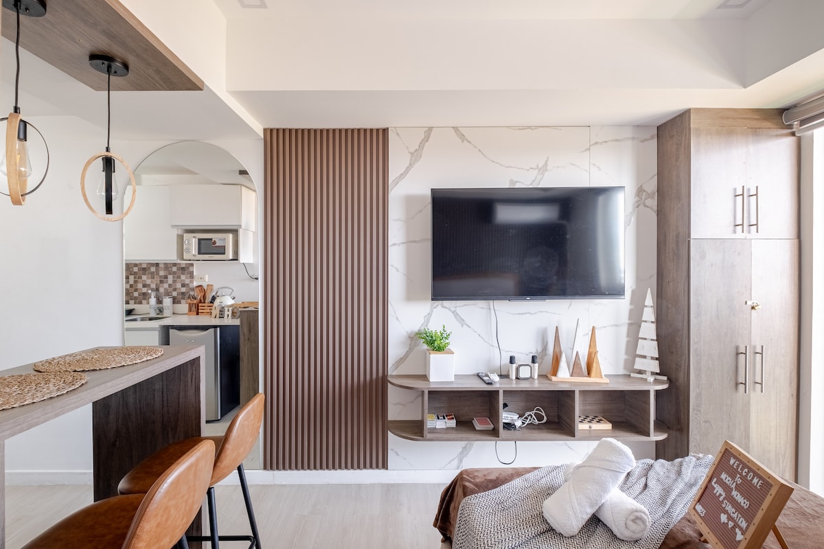 Welcome to The Meydan Suites at Azure North, a Japandi-inspired studio retreat in San Fernando, Pampanga. Just 1.5 hours from Manila, our spacious 2-bed studio comes with a full kitchen, one bath, and a private balcony on the quiet side of Azure. For ₱200 per guest per shift, you can enjoy resort-style amenities including the wave pool, the beach pool, and leisure facilities. It is the perfect sulit escape for couples, families, or barkada.