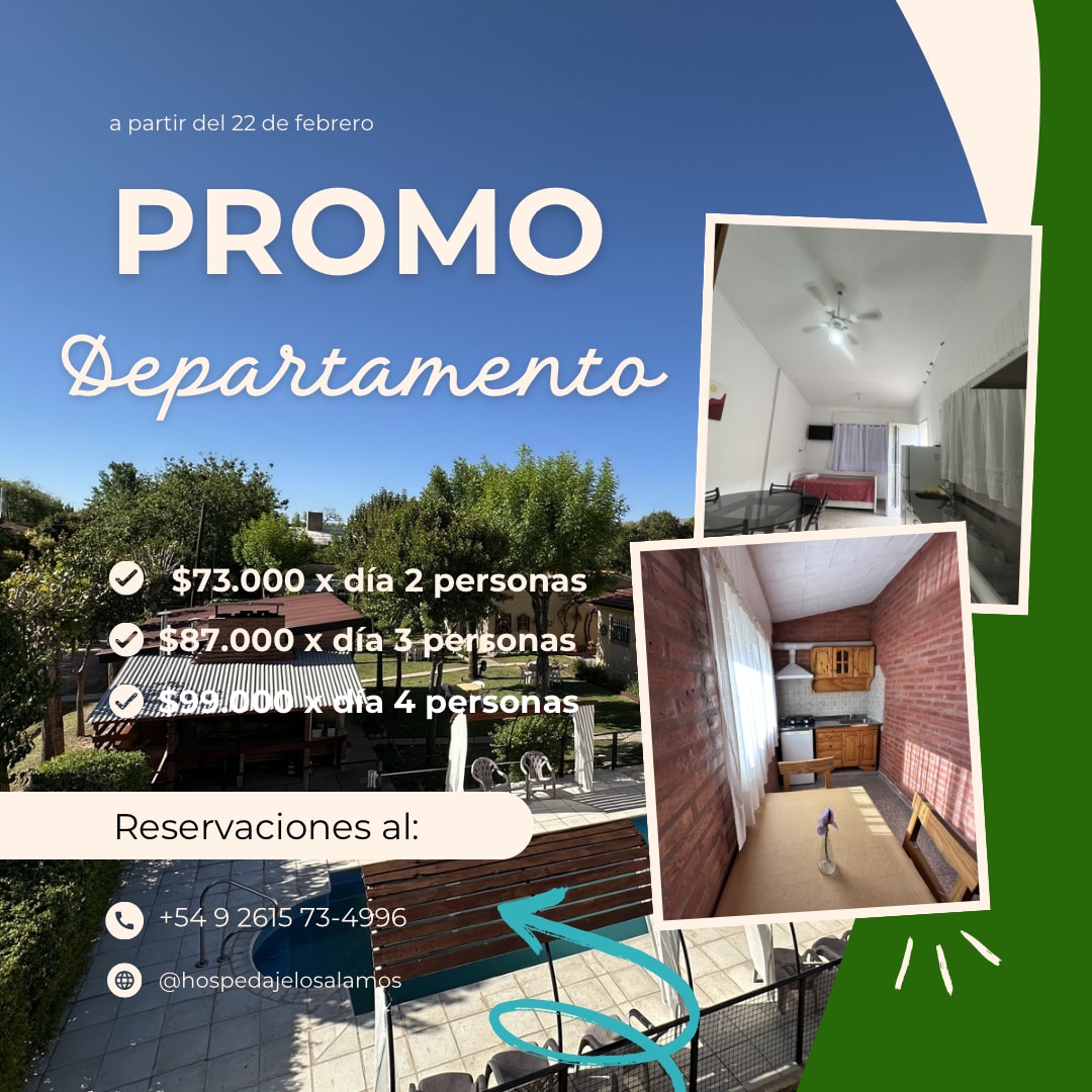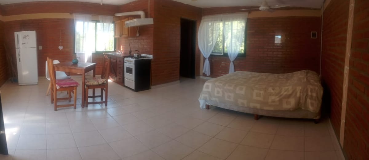 Ofrecemos un Monoambiente para familias y un departamento, para 2 personas. Ambos en un espacio tranquilo, familiar, Parque arbolado con parrilla y Wifi. A 6 cuadras del centro de Mina Clavero y rodeados de los Rios, Panaholma, Rio los Sauces y el Mina Clavero , declarado este ultimo una de las 7 maravillas de Argentina. Damos información turística de la zona por sus dueños. El precio publicado es por persona pero en grupo familiar. Consultar tarifas para una sola persona y promociones.