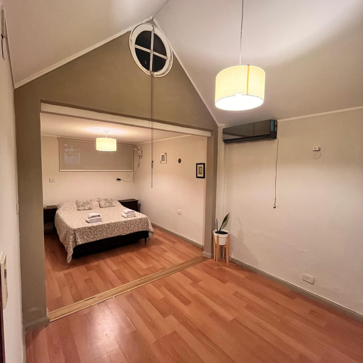 El precio publicado es para 2 personas (60mil pesos argentinos la noche). Suite doble, ideal para parejas, caminantes, aficionados al treking, a dos cuadras del centro comercial, a dos cuadras del río, elegante, cómodo. Cama matrimonial, ropa blanca (toallas y sabanas) baño y cocina completa, tvsmart, wifi. No cuenta con aire acondicionado y el parking es según disponibilidad, tiene salida a extenso parque trasero. Los esperamos.
