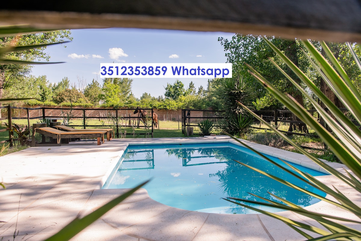 Cabaña al pie de las sierras con bajada propia al arroyo. Inmerso en el monte nativo rodeado de naturaleza. En el verano su mini piscina con vista a los cerros, su galería con asador y su gran jardín serán tu refugio. La salamandra te dará calor en invierno mientras disfrutas de la vista a los cerros nevados . La casita está pensada para que la privacidad sea lo más importante.