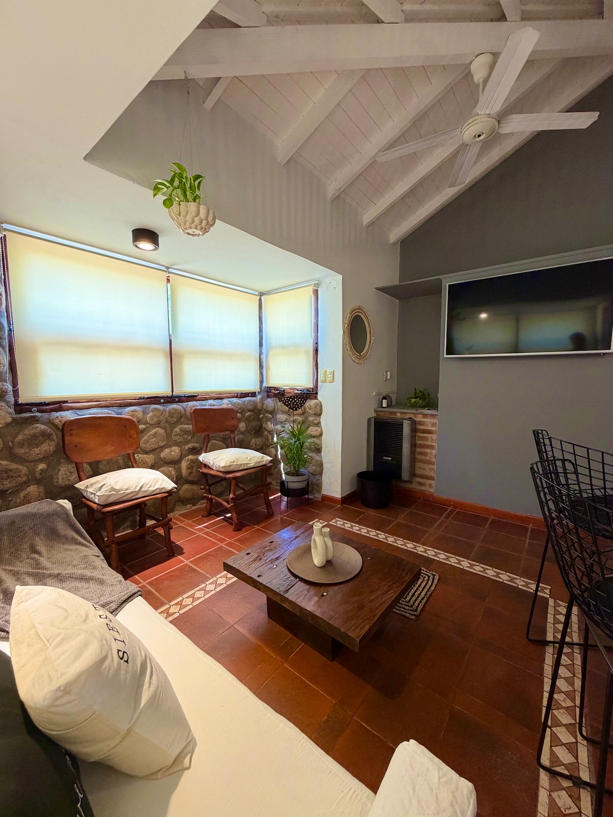 El precio publicado es para dos personas (70.000mil pesos argentinos) Apart ,ingreso por escalera cubierta, cocina completa, comedor/desayunador, baño completo, habitación matrimonial king y otra habitación con camas simples (ropa blanca) balcón en cada habitación y terraza privada con vista a las sierras. Wifi, tv Smart, aire acondicionado, parking, acceso a extenso jardín trasero. Excelente ubicación. Cómodo, elegante.
