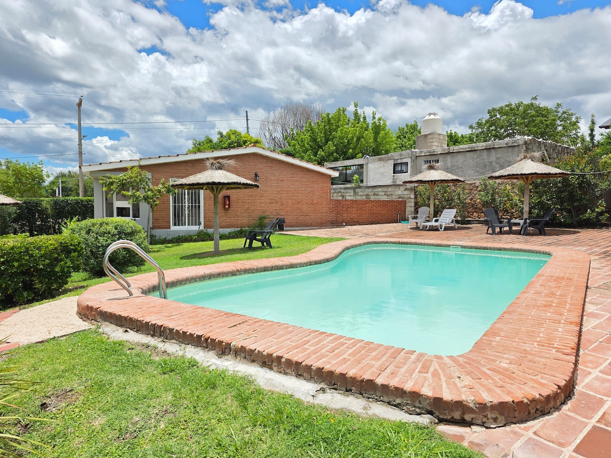 El complejo tiene tres cabañas, y el precio es solo por una de ellas e incluye desayuno y ropa blanca. Estamos situados junto al río Panaholma, con vistas panorámicas a las sierras. Con acceso privado a la playa, los huéspedes pueden disfrutar del desayuno en la arena y aprovechar al máximo sus vacaciones sin necesidad de traslados. Las cabañas tienen diseño arquitectónico de estilo español, estamos a 3 cuadras de la plaza principal, donde se encuentran todo. La pileta funciona de octubre/ abril