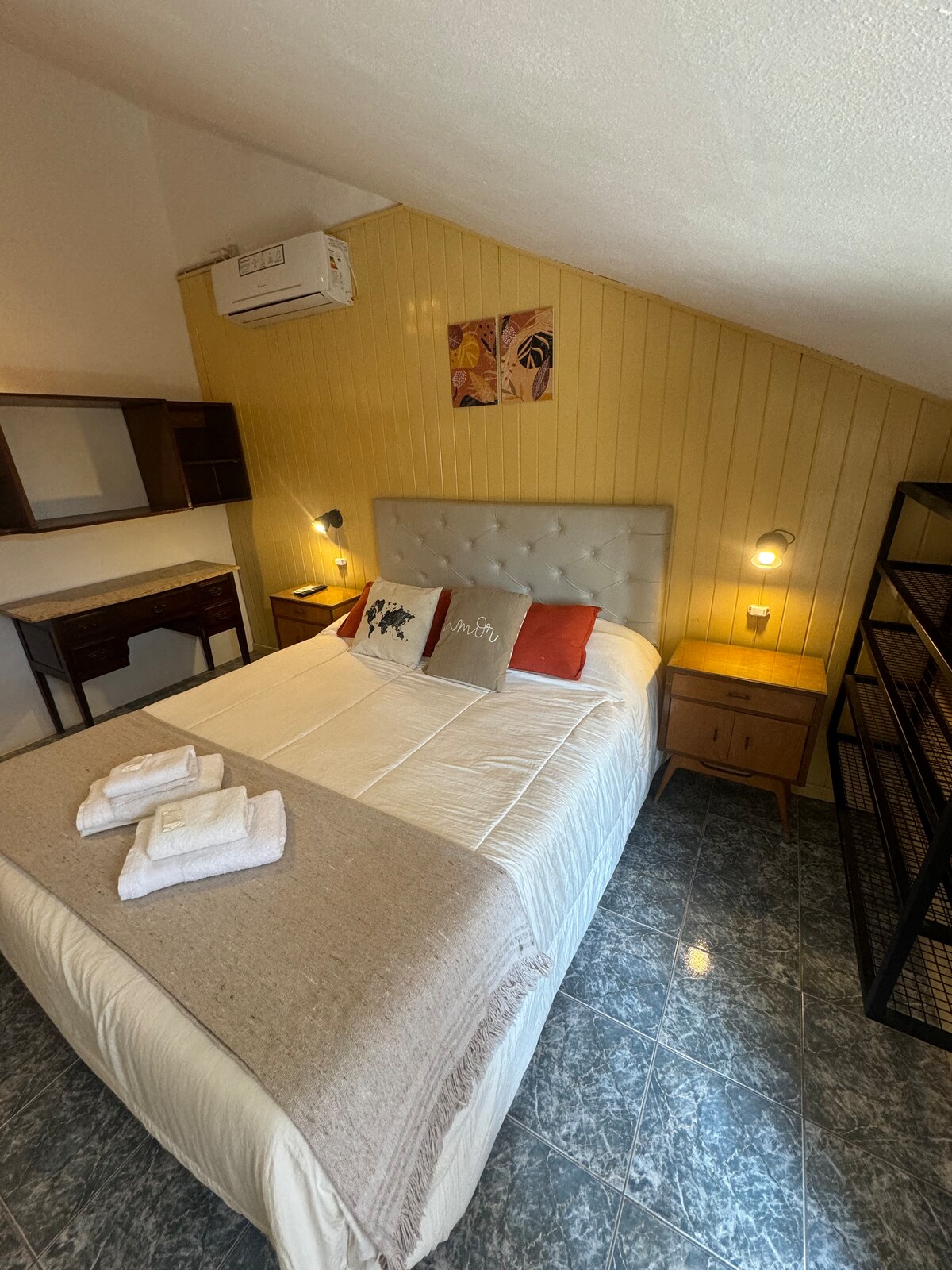 El precio publicado es para dos personas (70.000mil pesos argentinos) Apart ,ingreso por escalera cubierta, cocina completa, comedor/desayunador, baño completo, habitación matrimonial king y otra habitación con camas simples (ropa blanca) balcón en cada habitación y terraza privada con vista a las sierras. Wifi, tv Smart, aire acondicionado, parking, acceso a extenso jardín trasero. Excelente ubicación. Cómodo, elegante.