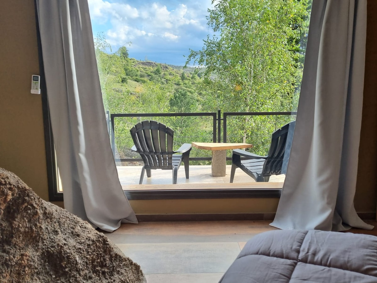 Casa cueva a 45 min de Mina Clavero y 3 hs de Córdoba Capital. Creá momentos únicos e inolvidables en una CASA CUEVA frente al río con vistas increíbles y ollas naturales para nadar. El 50 % de las paredes son piedras gigantes q ya estaban en el lugar. Puro bosque, rio y privacidad. Ideal caza fotográfica, senderismo, trekking y descansar con la familia. Vista al río en sus habitaciones, baño, cocina completa, parrilla y jardín. yo vivo en un depto junto a la casa con accesos independientes.