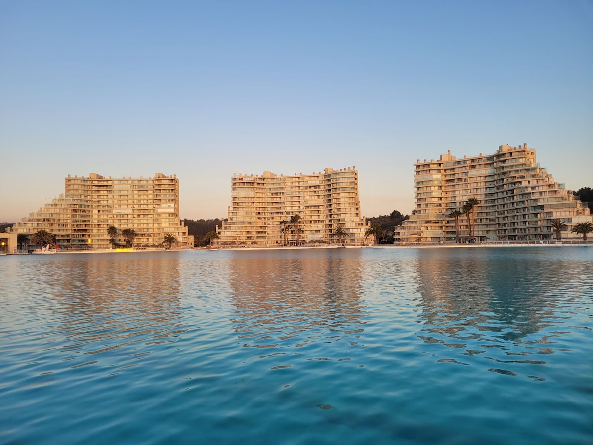 Departamento con vista panorámica. 3 habitaciones, 2 baños, 2 estacionamientos y cocina equipada. Incluye: • Wifi • 2 kayaks • 2 bodyboards • Parrilla Máximo 6 personas. El recinto tiene canchas, juegos, restaurantes y una de las piscinas más grandes del mundo para navegar y practicar deportes acuáticos. Piscinas para baño disponibles: • Fines de semana (31/10-08/12). • Todos los días (14/12-15/03). • Festivos todo el año. Piscinas temperadas y jacuzzi exclusivos para propietarios.