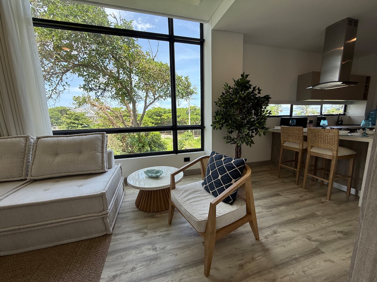 Apartasuite para estrenar en primera línea del mar, a tan solo 5 minutos del aeropuerto. Ideal para parejas o familias pequeñas que buscan ubicación, comodidad y lujo. Cuenta con cocina totalmente equipada, recepción 24/7, jacuzzi, parqueadero gratuito y mucho más. La propiedad cuenta con dos camas (nicho), cada una de 1.60 mts, un escritorio para trabajar y una terraza libre de ruido.