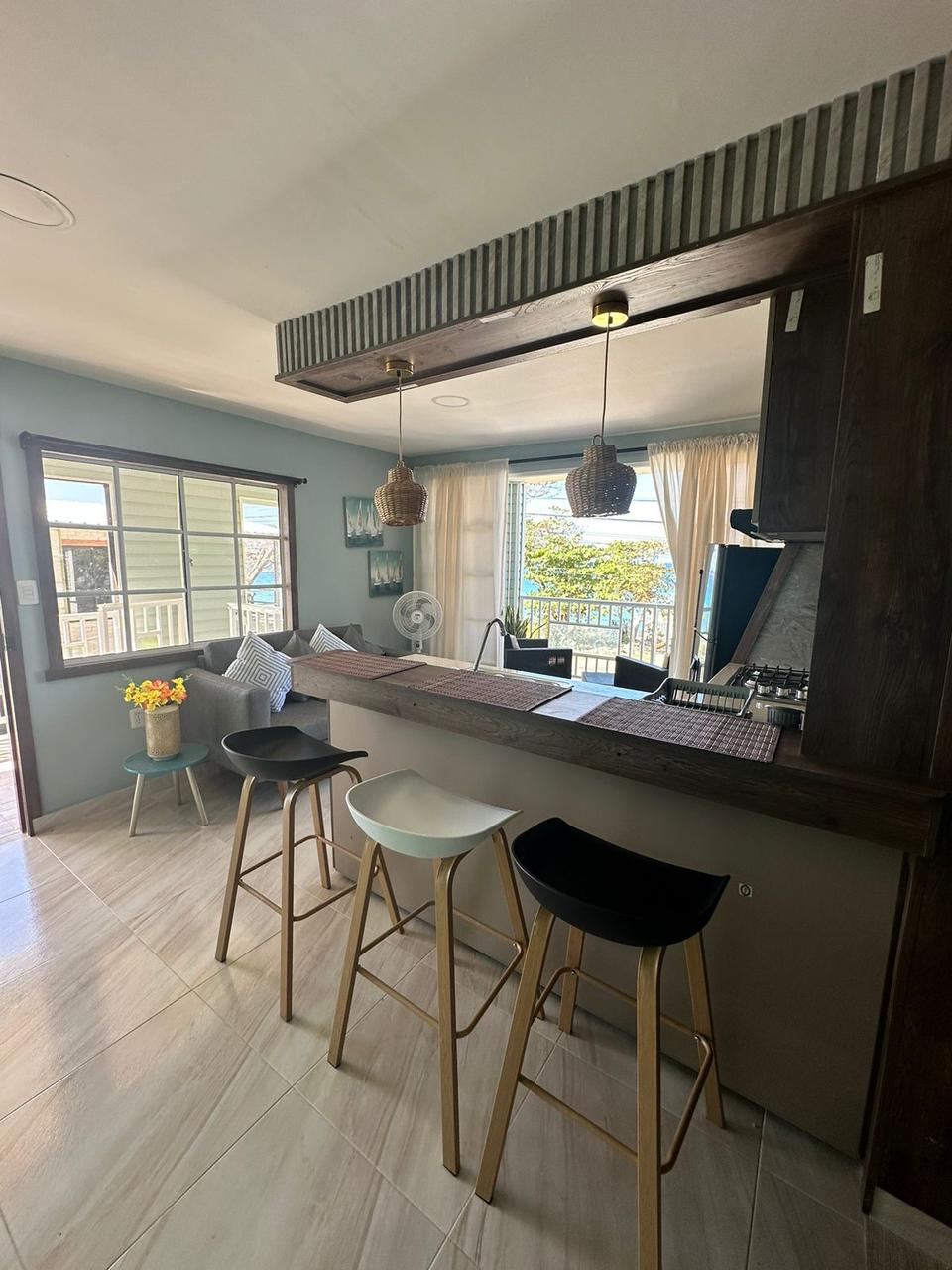 Enjoy breathtaking sunrises in a quiet, relaxing atmosphere away from the city crowds and chaos. Go to sleep with the sound of the ocean waves. Located in San Luis, a quiet area 20 min drive to/from downtown. Bright & spacious, private entry apartment w/balcony overlooking the ocean. Our beach is coral. Two beautiful sand beaches, food market & souvenir shops within walking distance. Kitchenette w fridge, microwave, coffeemaker, blender, and eating utensils to prepare light meals/snacks.